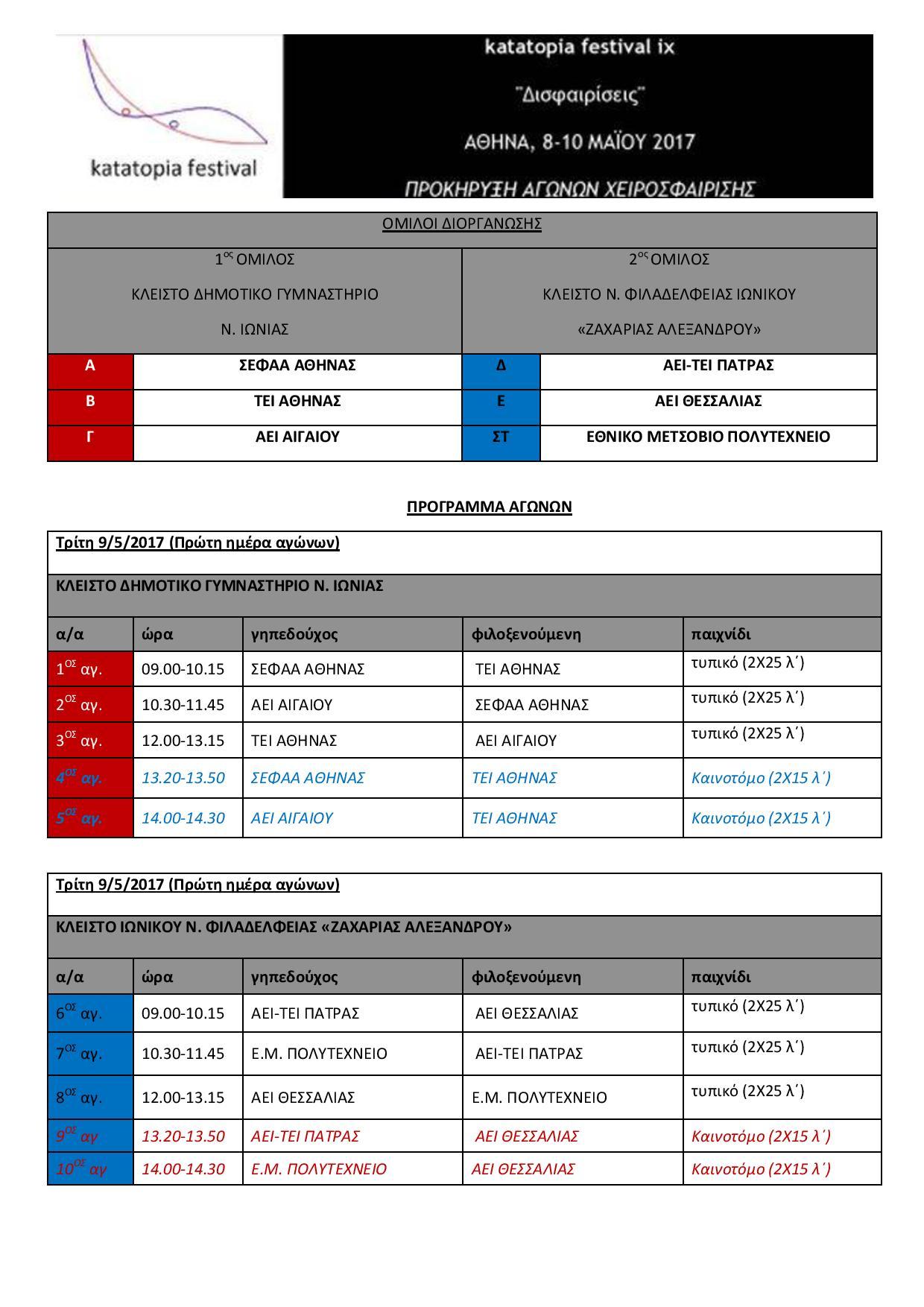 Α’ όμιλος: ΣΕΦΑΑ Αθηνών, ΤΕΙ Αθήνας, ΑΕΙ Αιγαίου