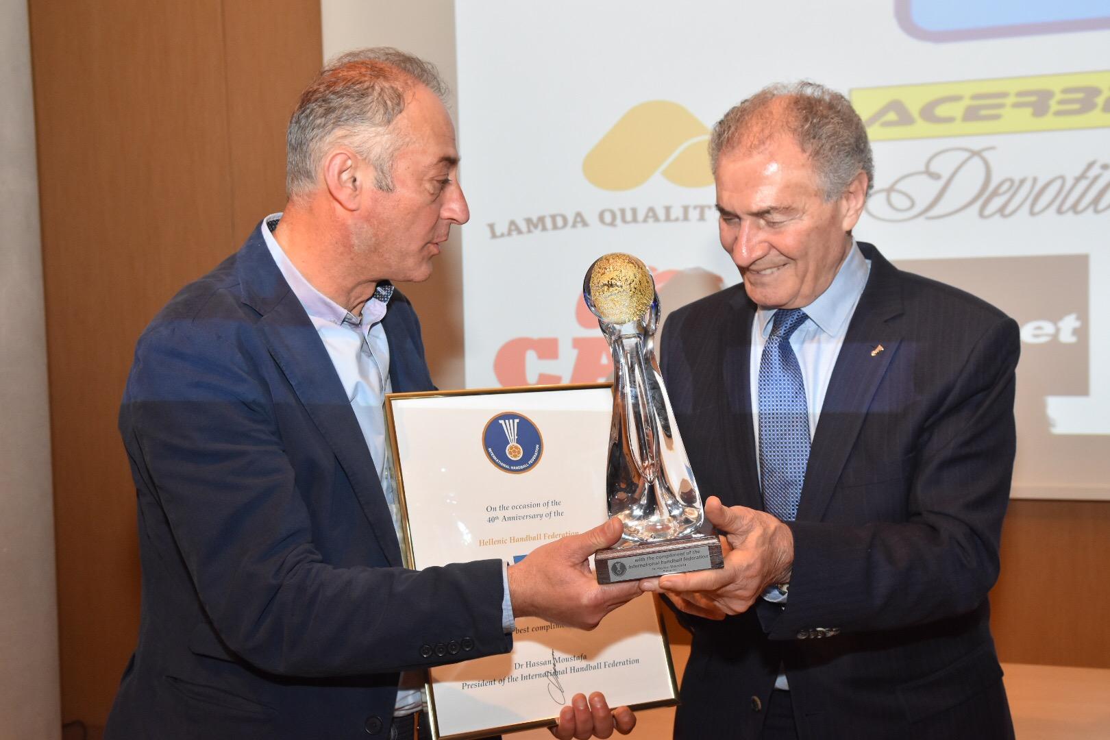 Από την πλευρά του ο Πρόεδρος της Διεθνούς Ομοσπονδίας Δόκτωρ Μουσταφά Χασάν μίλησε με θερμά λόγια για το ελληνικό χάντμπολ, τονίζοντας πως θα βοηθήσει με κάθε τρόπο, αναφερόμενος και στην συνάντηση με τον Υφυπουργό Αθλητισμού Γιώργο Βασιλειάδη. Ο Πρόεδρος της ΟΧΕ τον βράβευσε για την διαχρονική στήριξη του στην Ομοσπονδία και το άθλημα στην Ελλάδα, ενώ ο Πρόεδρος της διεθνούς έκανε και αυτός το δικό του δώρο στην Ομοσπονδία για τα 40 χρόνια του αθλήματος.
