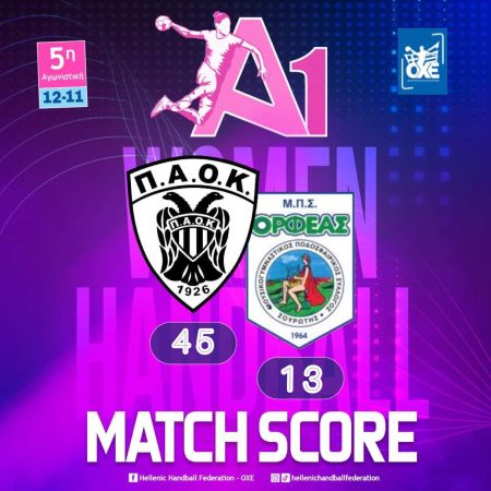 Εύκολο απόγευμα είχε ο νταμπλούχος ΠΑΟΚ επικρατώντας με χαρακτηριστική άνεση 45-13 του νεοφώτιστου Ορφέα Σουρωτής για την 5η αγωνιστική της Α1 Γυναικών.