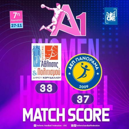 Το Πανόραμα νίκησε στη Νίκαια τον ΑΟΑΟΔ Κορυδαλλού με 33-37 και πήρε βαθμολογική ανάσα, στο πλαίσιο της 7ης αγωνιστικής της Α1 γυναικών.