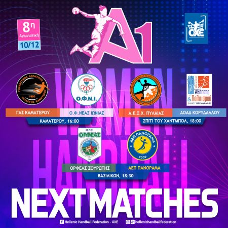 Με τρεις αναμετρήσεις, στο πλαίσιο της 8ης αγωνιστικής, συνεχίζεται το Σάββατο (10/12) το πρωτάθλημα της Α1 γυναικών.