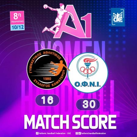 Το νικηφόρο σερί του στην Α1 Γυναικών συνέχισε ο ΟΦΝ Ιωνίας που επικράτησε 30-16 του ΓΑΣ Καματερού για την 8η αγωνιστική του πρωταθλήματος.