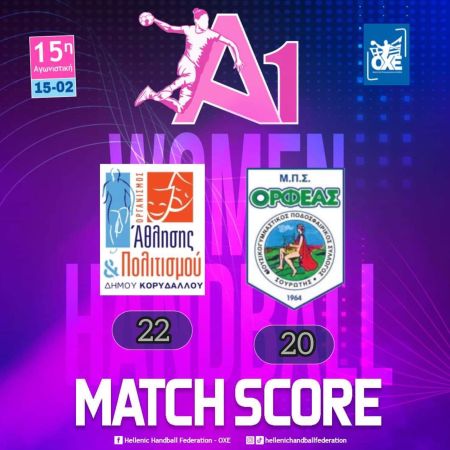 Βήμα παραμονής στην Α1 γυναικών έκανε ο ΑΟΑΟΔ Κορυδαλλού, που νίκησε τον Ορφέα Σουρωτής με 22-20, στο πλαίσιο της 15ης αγωνιστικής.