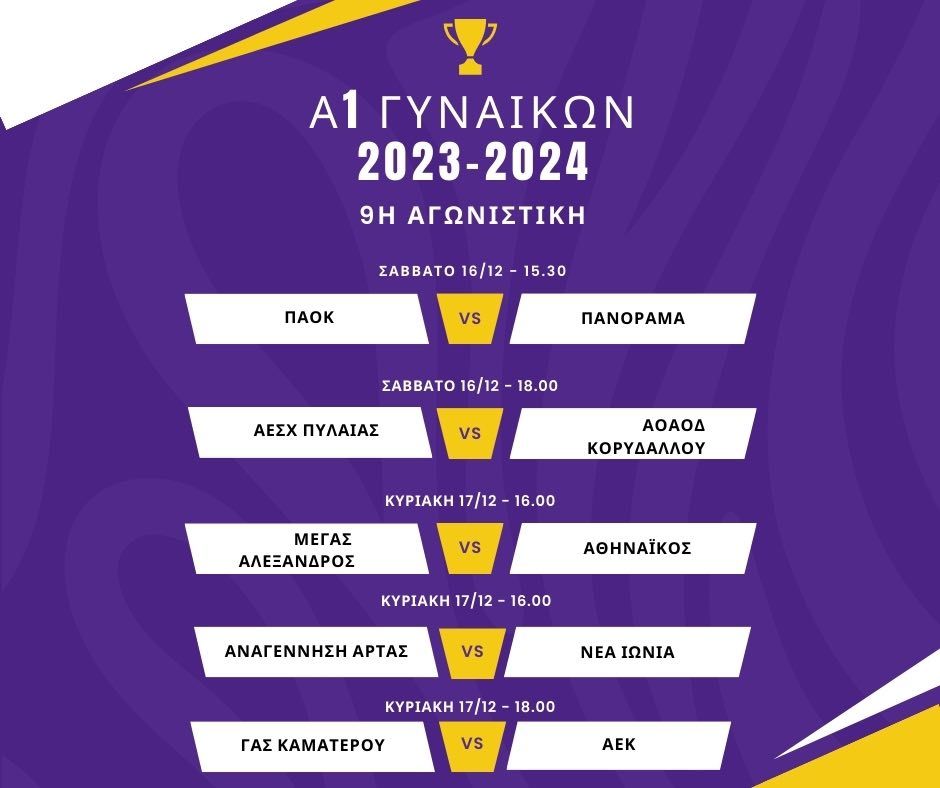 Α1 Γυναικών (9η αγωνιστική- Προαναγγελία)