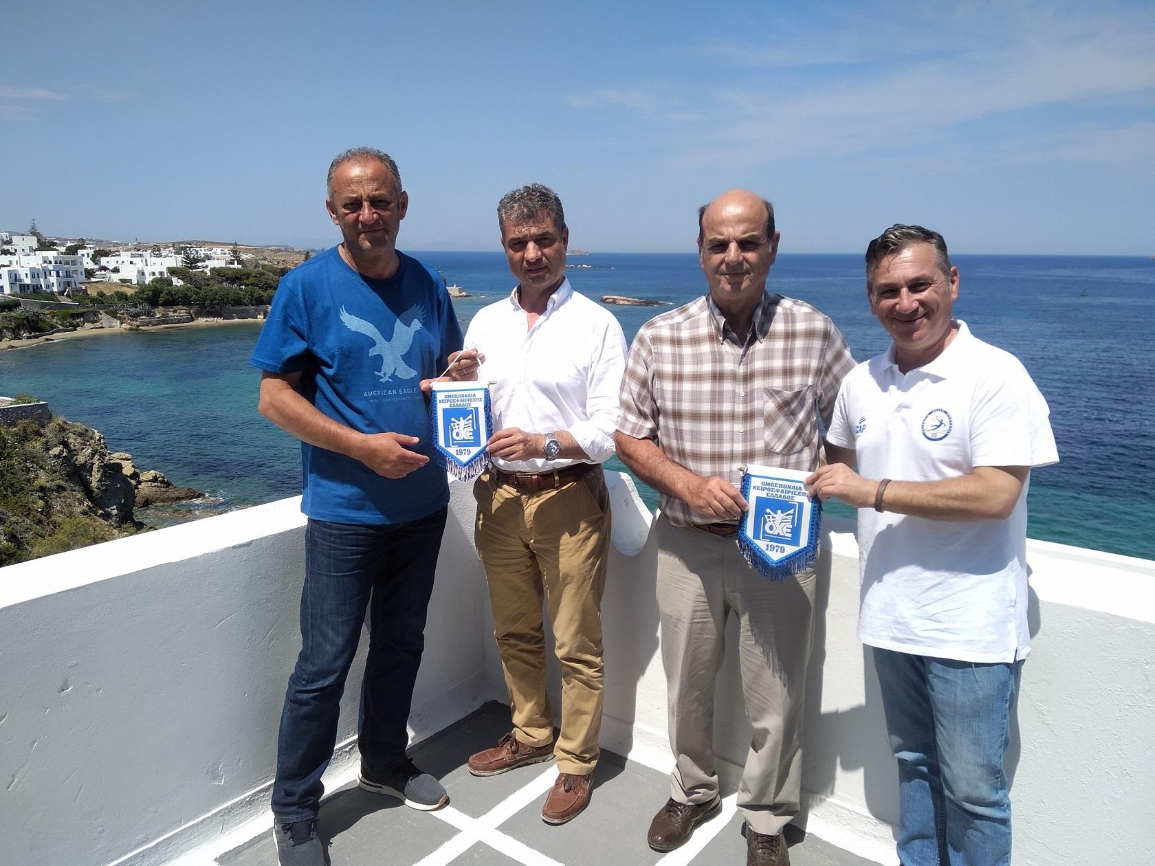 Αντιπροσωπεία της ΟΧΕ αποτελούμενη από τον Πρόεδρο Κώστα Γκαντή, τον Γενικό Γραμματέα Κώστα Σταματιάδη και τον Διευθυντή Επικοινωνίας-Μέλος της Επιτροπής Beach Handball Κωνσταντίνο Χατζηδημητρίου, έγινε δεκτή από τον Δήμαρχο Πάρου Μάρκο Κωβαίο και τον Αντιδήμαρχο Αθλητισμού Εμμανουήλ Μαλαματένιο.