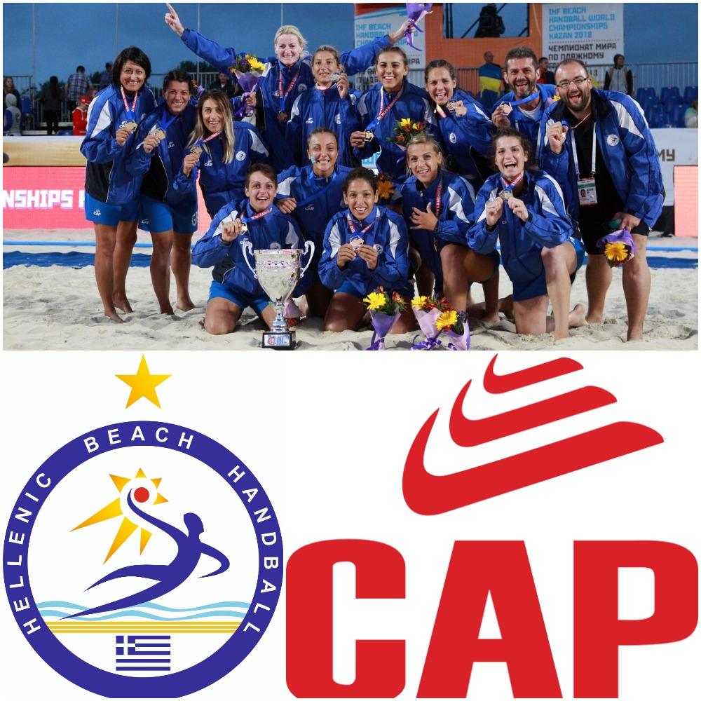 Η εταιρεία CAP βρίσκεται ανελλιπώς στο πλευρό του ελληνικού Βeach Ηandball από το καλοκαίρι του 2015. Με ρούχα της CAP οι Εθνικές ομάδες αγωνίστηκαν στους Μεσογειακούς Αγώνες της Πεσκάρα (2015), στο EURO Κ16 της Πορτογαλίας (2016), στο EURO Γυναικών της Κροατίας (2017), στο EURO K18 του Μαυροβουνίου (2018) και στο Παγκόσμιο Πρωτάθλημα του Καζάν (2018).