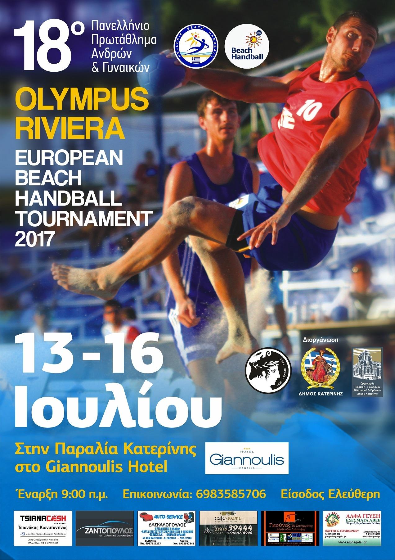 Στις πανέμορφες εγκαταστάσεις του Hotel Giannoulis στην Ολυμπιακή Ακτή Πιερίας αρχίζει αύριο το διεθνές τουρνουά beach handball με την ονομασία «1st OLYMPUS BEACH HANDBALL TOURNAMENT», το όποιο αποτελεί το 5ο τουρνουά του 18ου Πανελληνίου Πρωταθλήματος και είναι ενταγμένο στο EBT της Ευρωπαϊκής Ομοσπονδίας Χάντμπολ