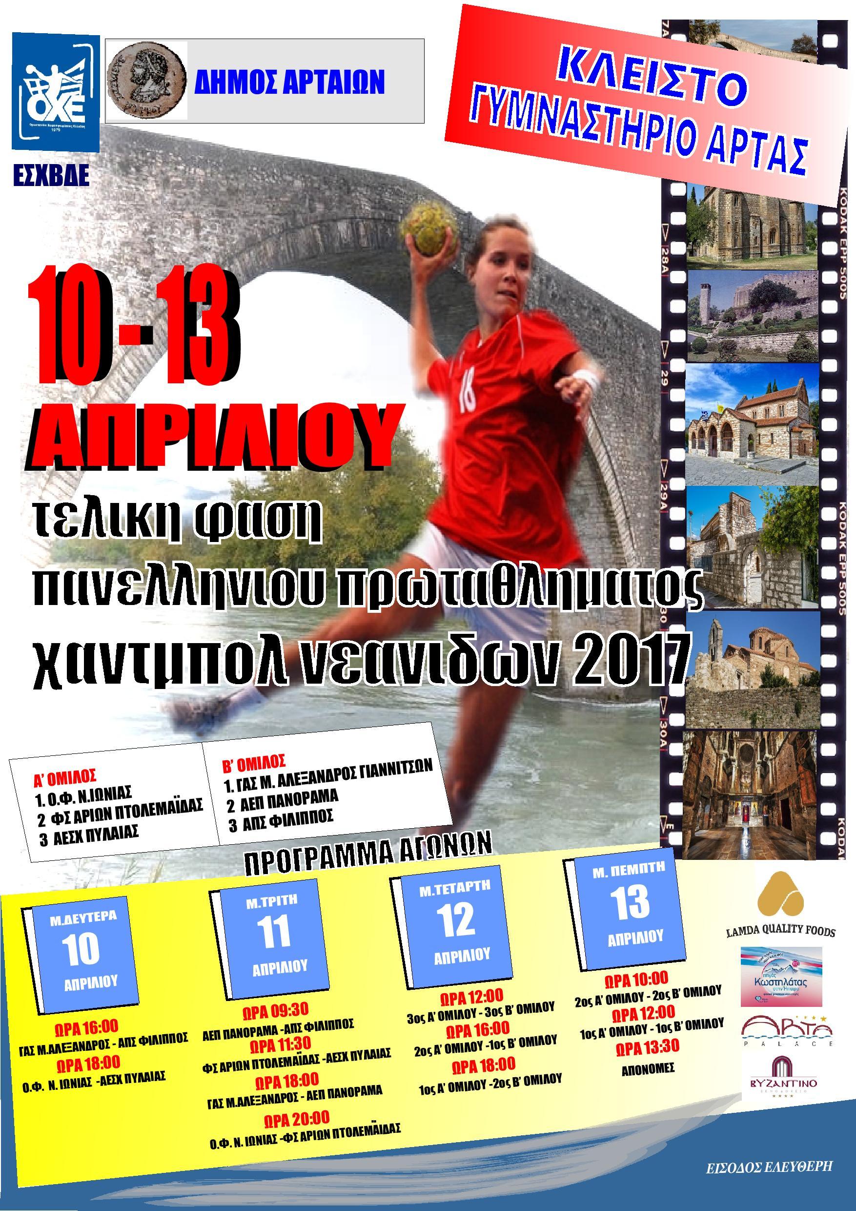 Άρχισε σήμερα στην Άρτα και θα ολοκληρωθεί την Πέμπτη 13 Απριλίου η τελική φάση του Πανελληνίου Πρωταθλήματος Νεανίδων με την συμμετοχή 6 σωματείων σε συνδιοργάνωση της ΟΧΕ με τον Δήμο Αρταίων, την Ε.Σ.Χ.ΒΔ.Ε., την Αναγέννηση Άρτας και τον Πρωτέα Άρτας