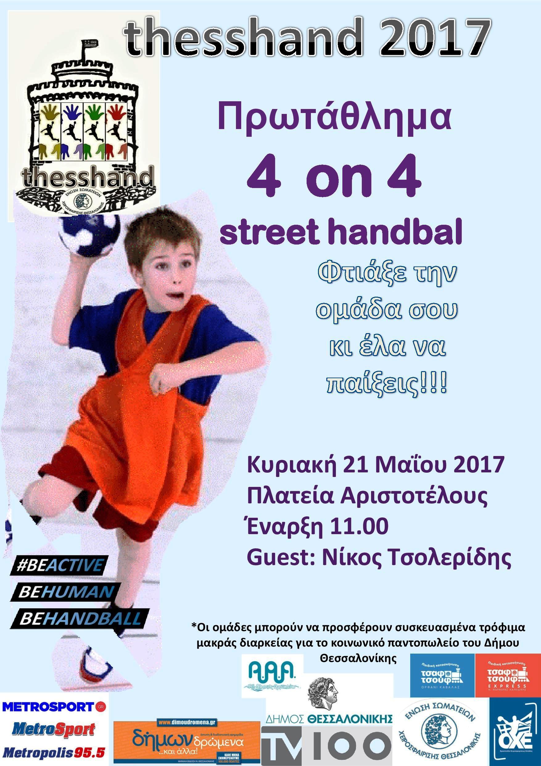 Η εκδήλωση street handball θα αρχίσει αύριο στις 11:00 και είναι ενταγμένη στο ευρωπαϊκό πρόγραμμα της κομισιόν «Be Active», που υλοποιείται στην Ελλάδα από την Γενική Γραμματεία Αθλητισμού.