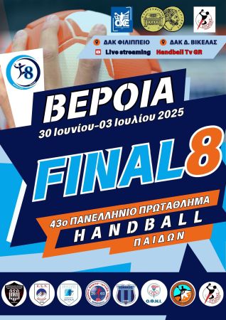 Η καρδιά του ελληνικού χάντμπολ θα χτυπά από τις 30 Ιουνίου έως τις 3 Ιουλίου 2025 στη Βέροια, η οποία θα φιλοξενήσει το Final-8 του 43ου Πανελλήνιου Πρωταθλήματος Παίδων, που αποτελεί και την τελευταία χρονικά διοργάνωση των αναπτυξιακών πρωταθλημάτων της ΕΑΠ-ΟΧΕ στη φετινή σεζόν.