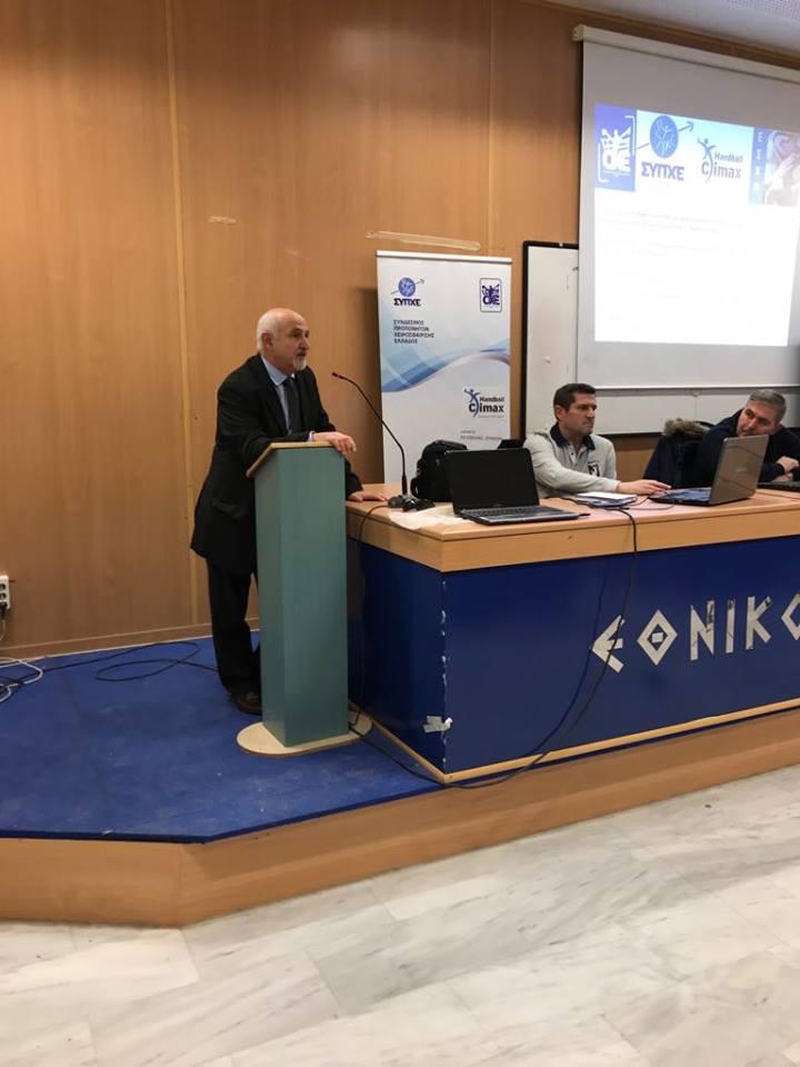 Χαιρετισμούς απηύθυναν ο Πρόεδρος του ΣΥΠΧΕ Δημήτρης Σκάρλος, ο Πρόεδρος της ΕΣΧΘ και μέλος του Δ.Σ. της ΟΧΕ Δημήτρης Σαουλίδης, ο Ειδικός Γραμματέας της ΕΣΧΘ και υπεύθυνος ανάπτυξης Μανώλης Ανδρεαδάκης, ο Πρόεδρος της Επιστημονικής Επιτροπής της ΟΧΕ Χρήστος Κοτζαμανίδης και ο διοργανωτής του Handball Climax Βασίλης Σκανδάλης.