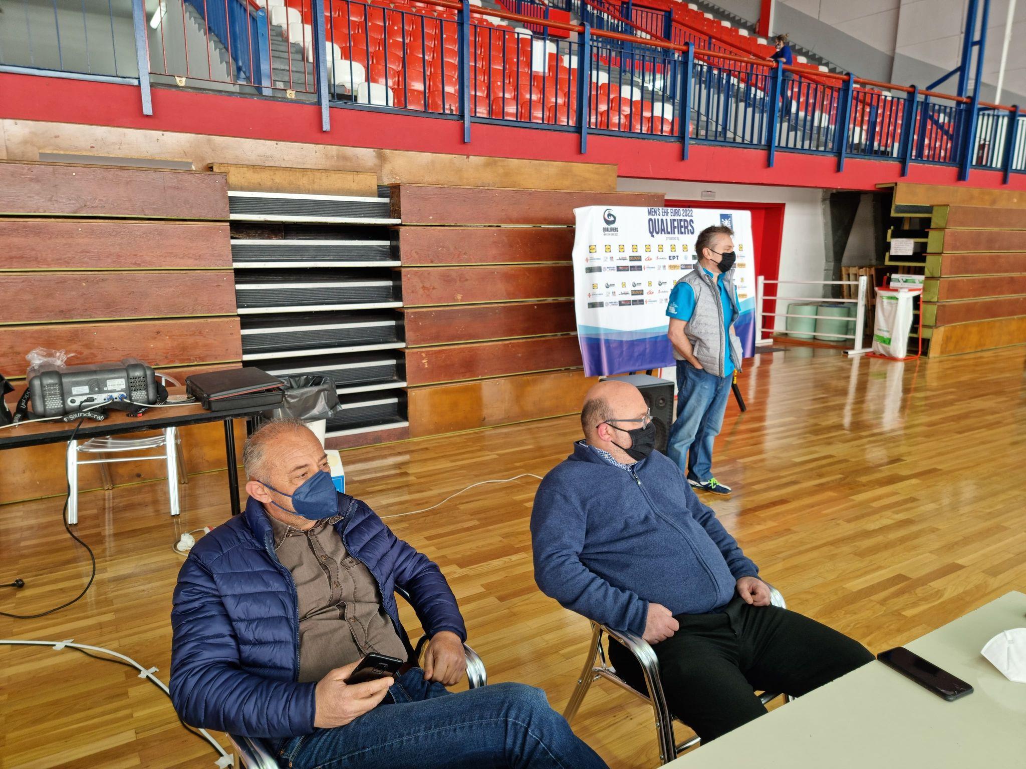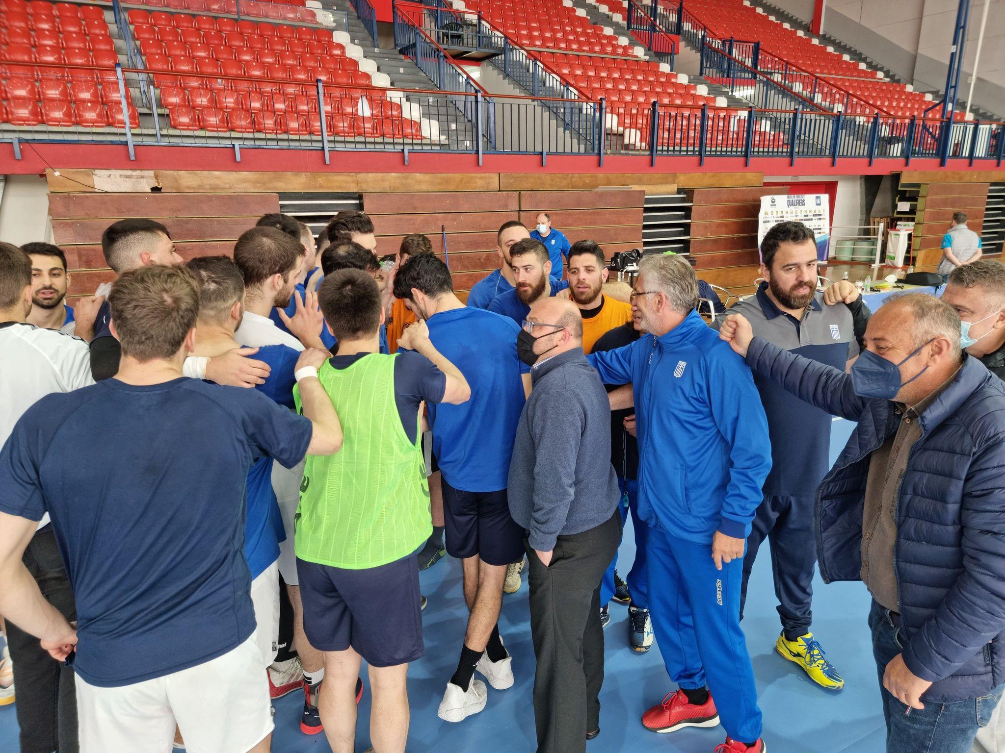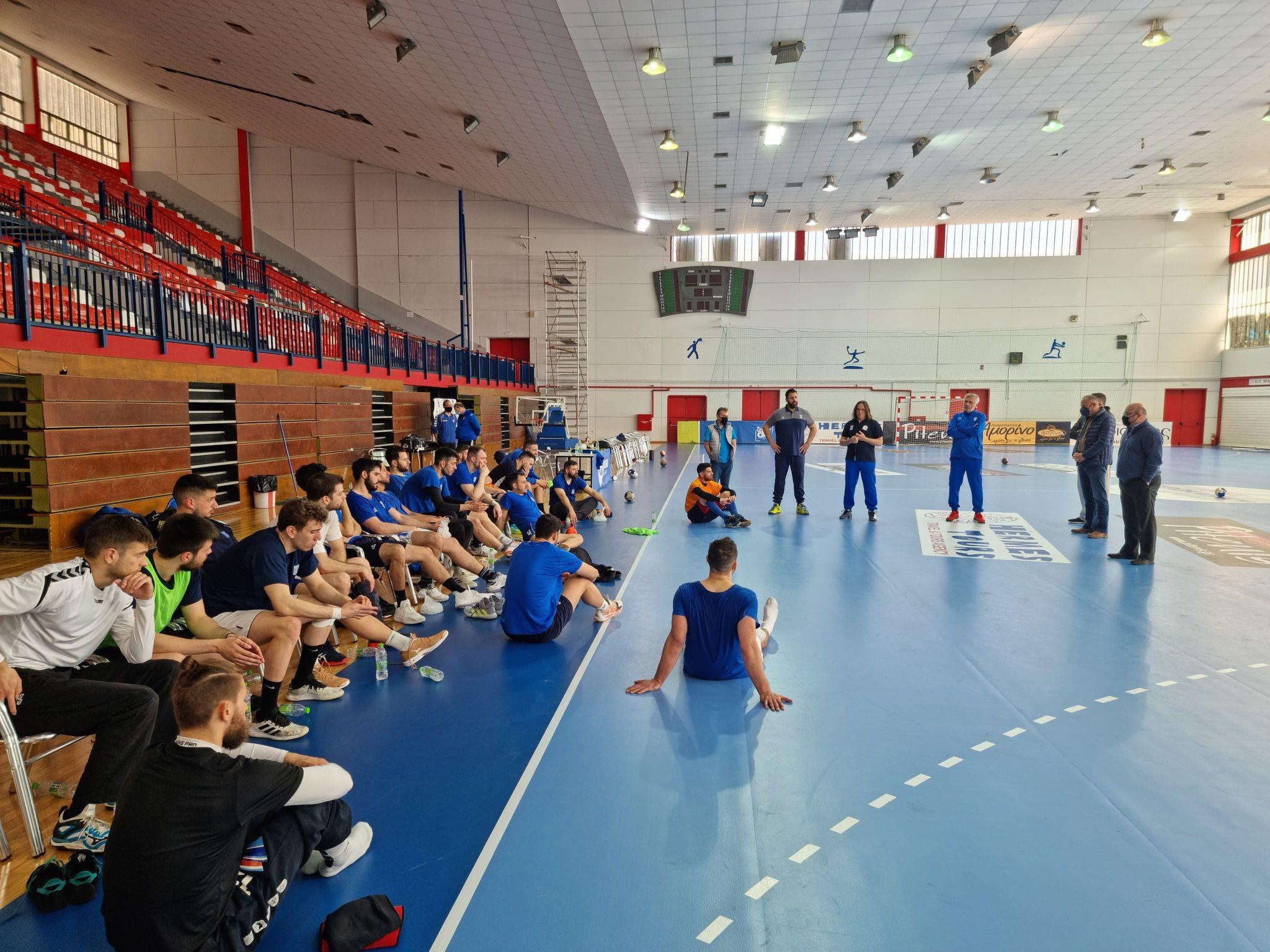 Ο Πρόεδρος και ο Αντιπρόεδρος της ΟΧΕ μετά το τέλος της προπόνησης μίλησαν στους διεθνείς για τα παιχνίδια απέναντι σε Γαλλία (27/4, 2/5) και Σερβία (29/4) για τα προκριματικά του ΕURO 2022.