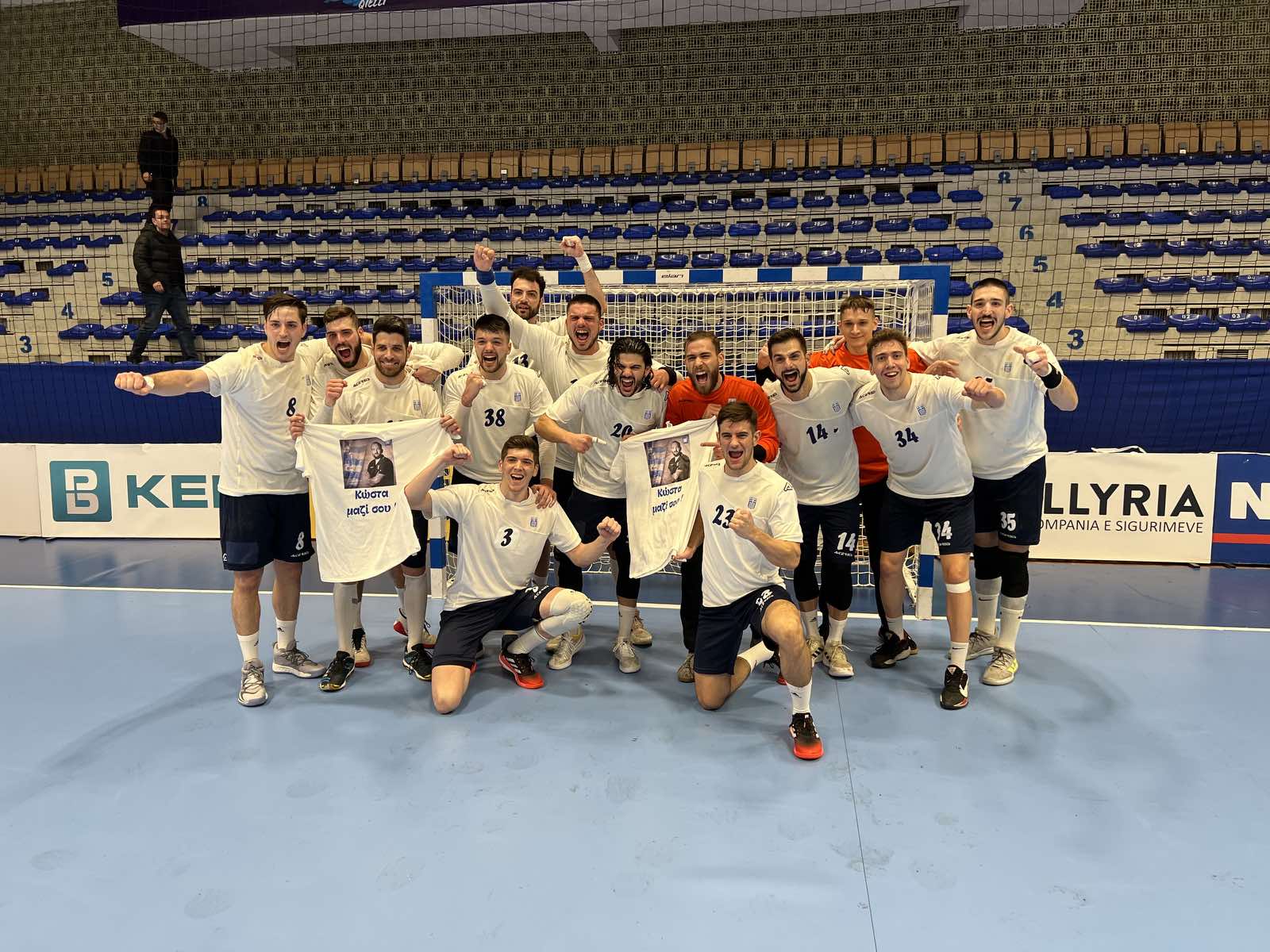 Αξιοσημείωτο είναι ότι οι διεθνείς, το τεχνικό επιτελείο, αλλά και ο αρχηγός της αποστολής, Κώστας Βιολιτζής, αφιέρωσαν τη νίκη στον διευθυντή επικοινωνίας της ΟΧΕ, Κωνσταντίνου Χατζηδημητρίου, που για πρώτη φορά έχασε αγώνα του αντιπροσωπευτικού συγκροτήματος μετά από 13 χρόνια, λόγω του προβλήματος υγείας που αντιμετωπίζει και σταδιακά το ξεπερνά. Οι μπλούζες με τη μήνυμα «Κώστα μαζί σου», που κράτησαν οι διεθνείς μετά τη νίκη συνοδεύονται και από τις ευχές όλων για γρήγορη επιστροφή του Κωνσταντίνου κοντά στην Εθνική.
