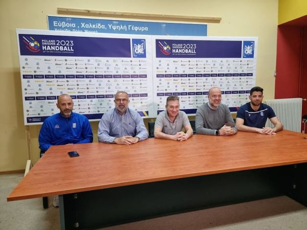 Πραγματοποιήθηκε στο κλειστό γυμναστήριο Κανήθου- Χαλκίδας η επίσημη συνέντευξη Τύπου του αγώνα Ελλάδα- Μαυροβούνιο (13/4, 19:15, ΕΡΤ3) για τα πλέι οφ του Παγκοσμίου Πρωταθλήματος του 2023, παρουσία εκπροσώπων της Ομοσπονδίας, της Εθνικής Ανδρών, της Περιφέρειας Στερεάς Ελλάδας και του Δήμου Χαλκιδέων.