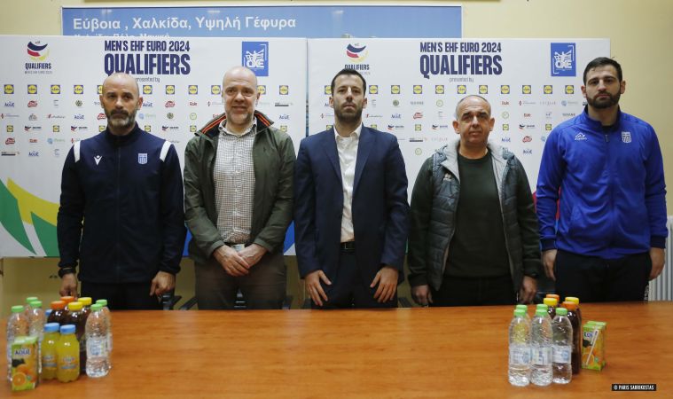 Στο κλειστό γυμναστήριο Κανήθου- Χαλκίδας πραγματοποιήθηκε η επίσημη συνέντευξη Τύπου του αγώνα Ελλάδα- Βέλγιο, o οποίος θα διεξαχθεί αύριο (18:00-ΕΡΤSPORTS1) για τα προκριματικά του EURO 2024.