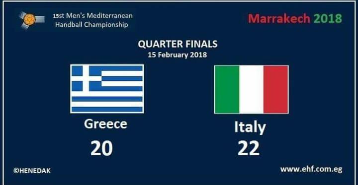 Η Εθνική μας ομάδα έχασε στις λεπτομέρειες από την Ιταλία με 22-20 στα προημιτελικά των 15ων Μεσογειακών Αγώνων στην κατηγορία των Εφήβων.