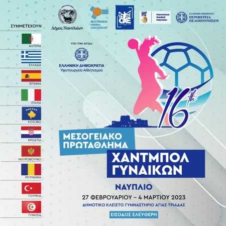 Ο χρόνος μετρά πλέον αντίστροφα για την έναρξη των 16ων Μεσογειακών Αγώνων Χάντμπολ Γυναικών που θα διεξαχθούν στο Ναύπλιο το διάστημα 27 Φεβρουαρίου – 4 Μαρτίου 2023, σε συνδιοργάνωση του Δήμου Ναυπλιέων, της Ομοσπονδίας Χειροσφαιρίσεως Ελλάδος και της Περιφέρειας Πελοποννήσου (Περιφερειακή Ενότητα Αργολίδας).
