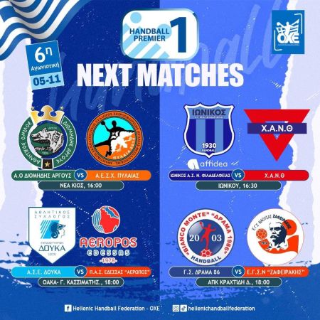 Τέσσερις αγώνες θα διεξαχθούν το Σάββατο (5/11), στο πλαίσιο της 6ης αγωνιστικής της Handball Premier. Αναλυτικά...