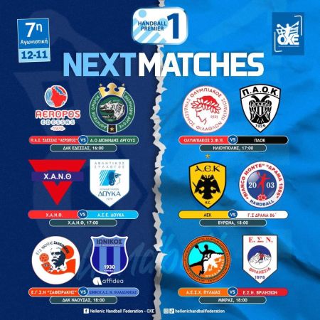 Πλήρης δράση για το πρωτάθλημα της Handball Premier, καθώς το απόγευμα του Σαββάτου (12/11) θα διεξαχθούν έξι αγώνες, στο πλαίσιο της 7ης αγωνιστικής.