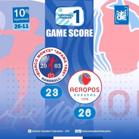 Την τρίτη εκτός έδρας νίκη του στο πρωτάθλημα της Handball Premier πανηγύρισε ο Αερωπός, που επικράτησε εκτός έδρας της Δράμας '86 με 23-26, στο πλαίσιο της 10ης αγωνιστικής.
