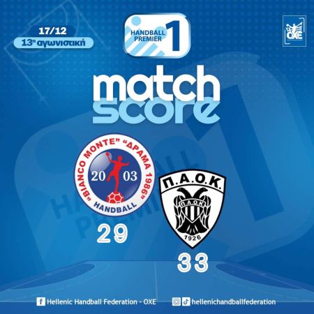 Σπουδαία εκτός έδρας νίκη επί της Δράμας, με 29-33, πανηγύρισε ο ΠΑΟΚ στο πλαίσιο της 13ης αγωνιστικής της Handball Premier και παραμένει στην τρίτη θέση με απόσταση ασφαλείας από τους διώκτες του.