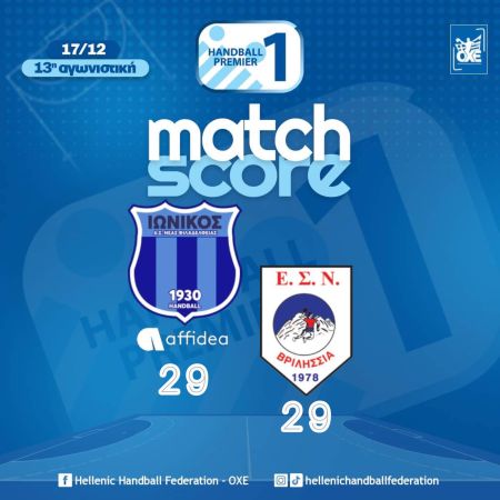 Απίστευτη εξέλιξη στη Νέα Φιλαδέλφεια με Ιωνικό Affidea και Βριλήσσια να αναδεικνύονται ισόπαλοι 29-29 και να παίρνουν από έναν βαθμό στην 13η αγωνιστική.