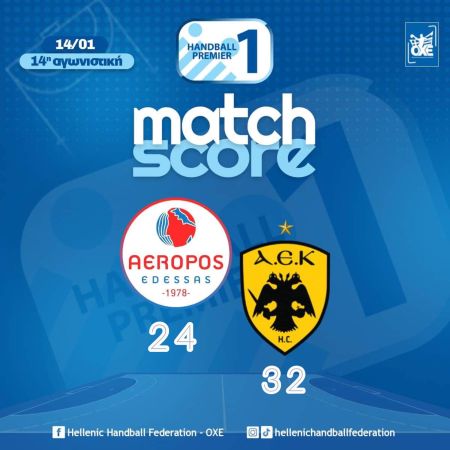 Με τους βαθμούς της νίκης έφυγε από την Έδεσσα η ΑΕΚ, καθώς επικράτησε του Αερωπού με 32-24, για τη 14η αγωνιστική της Handball Premier.