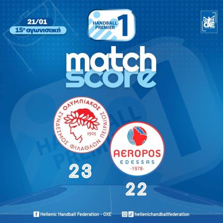 Νίκη- θρίλερ που τον διατηρεί στην κορυφή της Handball Premier πήρε ο Ολυμπιακός ΣΦΠ/Όμιλος Ξυνή με 23-22 απέναντι στο μαχητικό και ψυχωμένο Αερωπό Έδεσσας που κατέβηκε με 13 παίκτες (και έχασε δύο αθλητές με κόκκινες στη διάρκεια του ματς), αλλά αυτό δεν τον εμπόδισε να κάνει ένα εξαιρετικό παιχνίδι και να φτάσει κοντά στην έκπληξη της σεζόν.