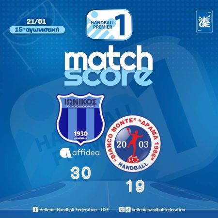 Με τον τερματοφύλακα Δημήτρη Μπραουδάκη να κάνει μεγάλη εμφάνιση, ο Ιωνικός Affidea πέτυχε σπουδαία νίκη με 30-19 επί της Monte Βιαnco Δράμας στην 15η αγωνιστική της Handball Premier.