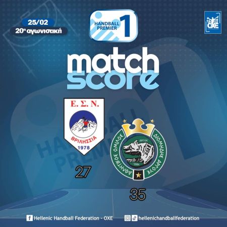 Με νίκη 35-27 από τα Βριλήσσια πέρασε ο Διομήδης Άργους στην 20η αγωνιστική της Handball Premier εξασφαλίζοντας πλέον και μαθηματικά την 4η θέση που οδηγεί στα πλέι οφ και φυσικά ένα ευρωπαϊκό εισιτήριο για την επόμενη σεζόν.