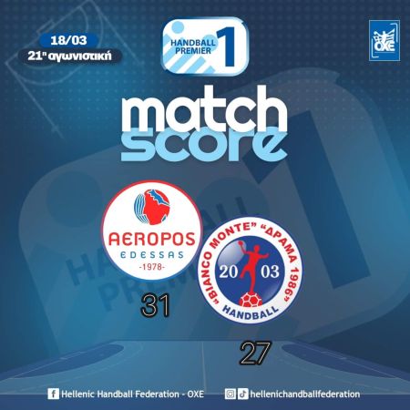 Πλεονέκτημα στη μάχη για το ευρωπαϊκό εισιτήριο πήρε ο Αερωπός που επικράτησε της Δράμας με 31-27, για την 21η αγωνιστική της Handball Premier.