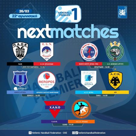 Με πέντε αναμετρήσεις ολοκληρώνεται την Κυριακή, 26 Μαρτίου, η κανονική διάρκεια του πρωταθλήματος της Handball Premier.