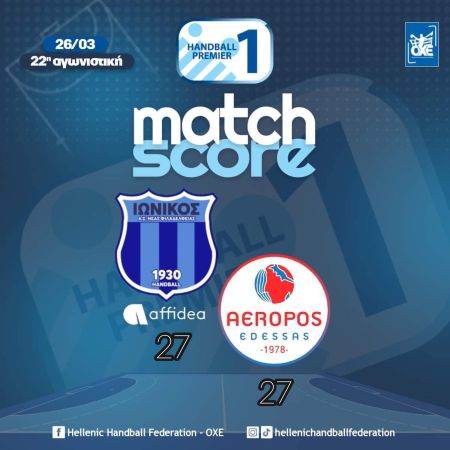 Ένα βαθμό έψαχνε στη Νέα Φιλαδέλφεια ο Αερωπός και τον βρήκε (27-27) απέναντι στον Ιωνικό Affidea, καταλαμβάνοντας την 5η θέση στη Handball Premier, η οποία μπορεί να του δώσει ένα ευρωπαϊκό εισιτήριο.