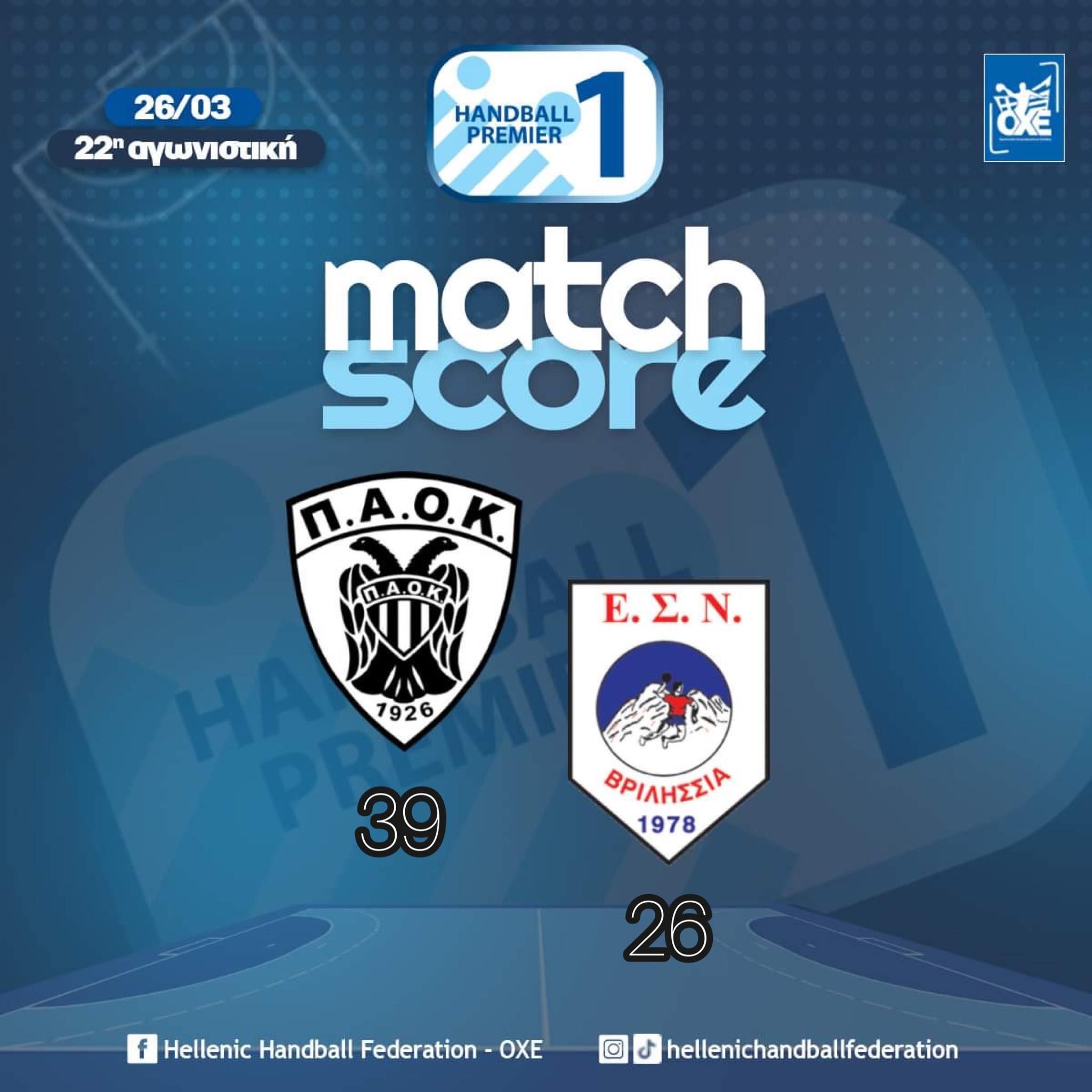ΠΑΟΚ- Βριλήσσια 39-26