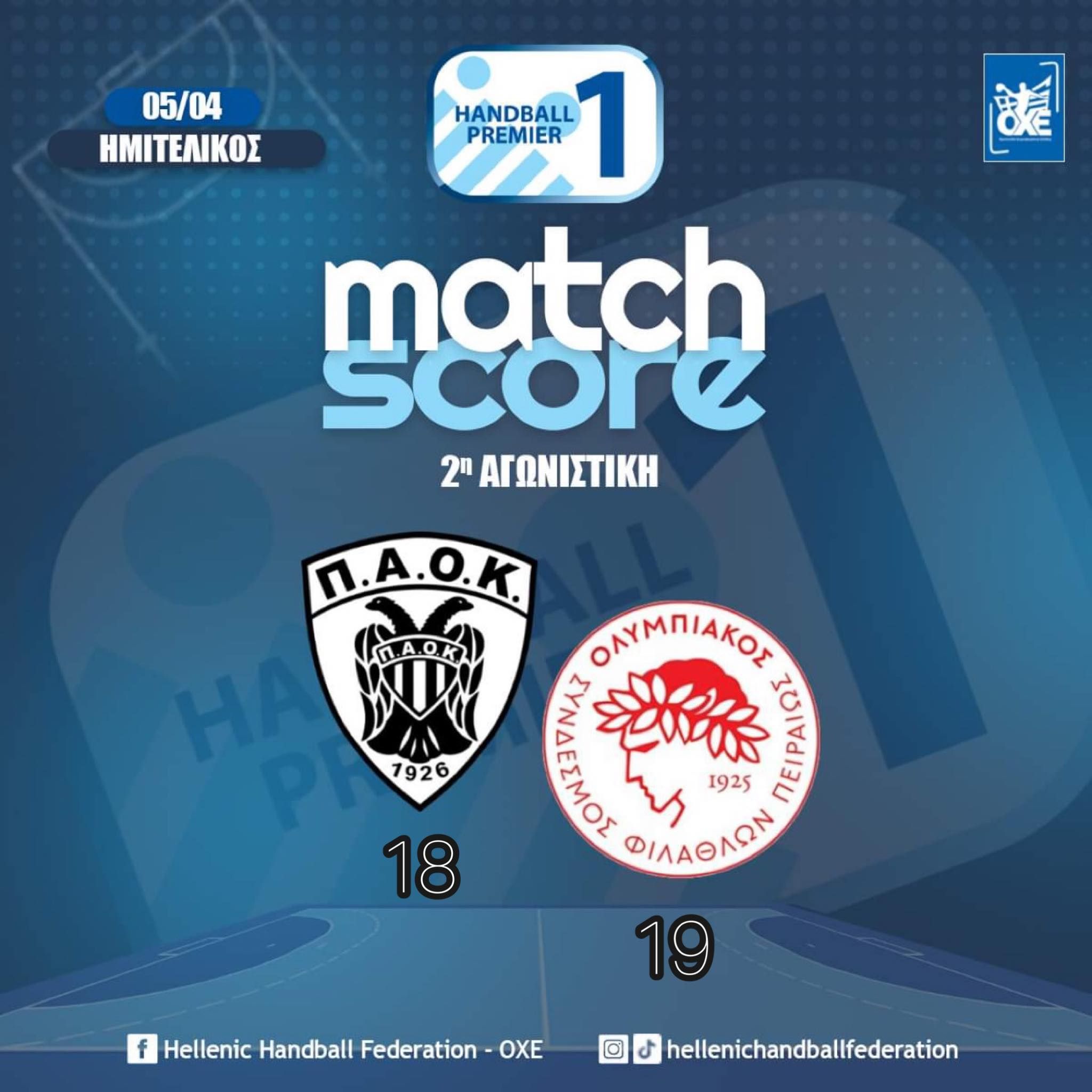 2ος τελικός Handball Premier: Ολυμπιακός - ΑΕΚ (17/5 – 19:30)