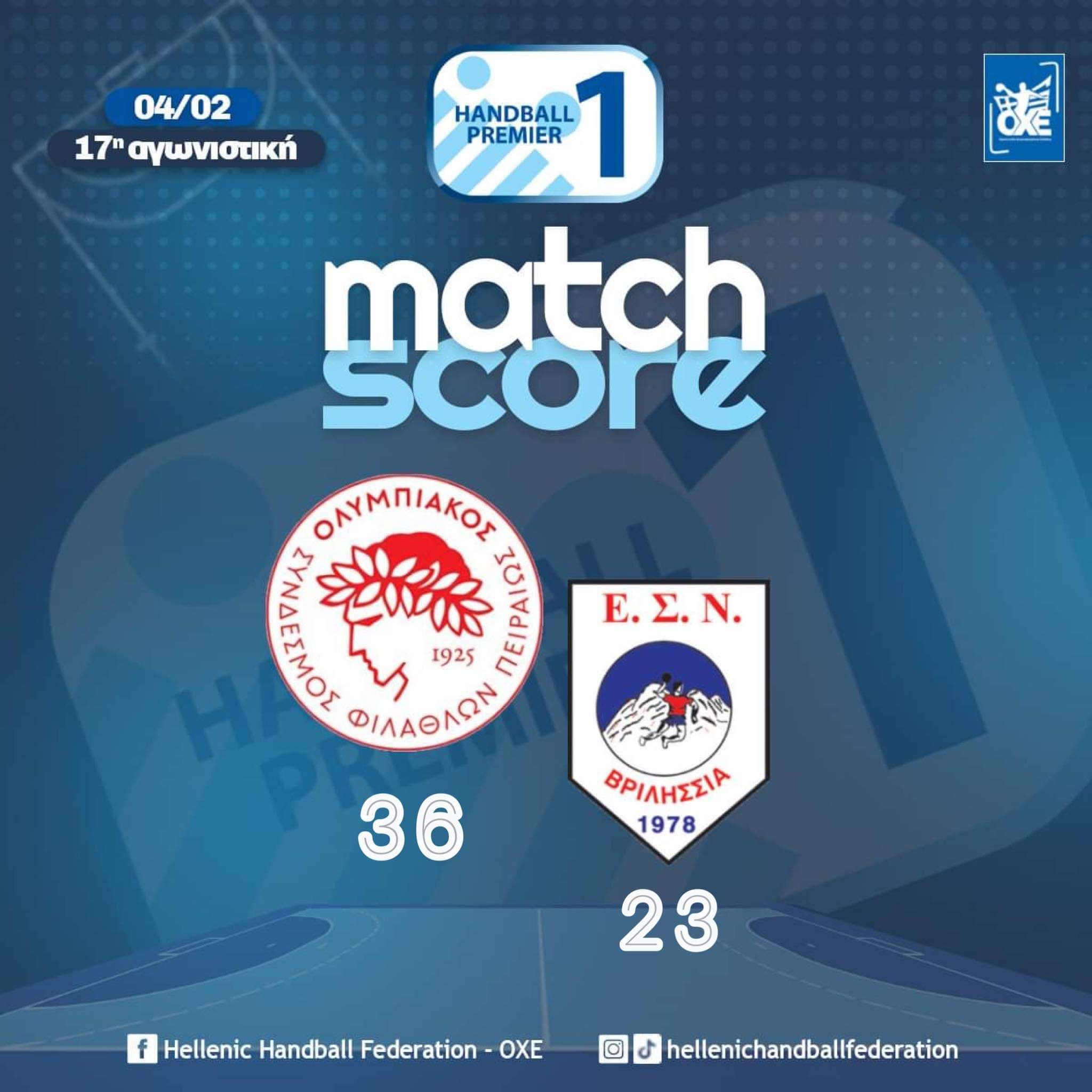 Ολυμπιακός ΣΦΠ – ΕΣΝ Βριλησσίων 36-23