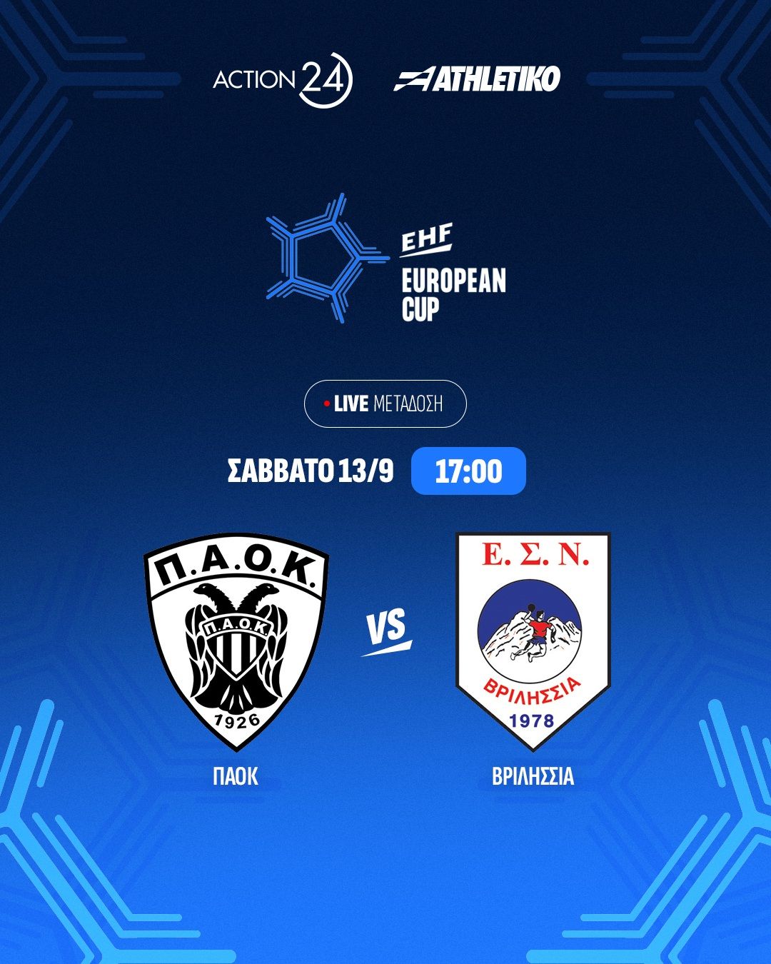 ΠΑΟΚ- ΕΣΝ Βριλησσίων (13/9, 17:00, Action24)