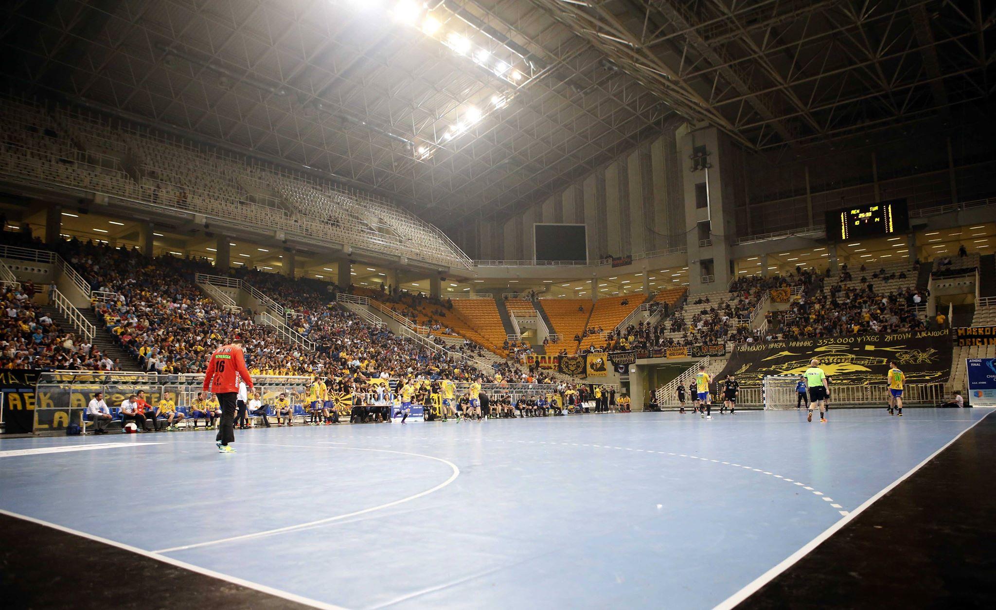 Στο πρώτο ιστορικό παιχνίδι χάντμπολ στο κλειστό «Νίκος Γκάλης» του ΟΑΚΑ η ΑΕΚ νίκησε 27-26 την Ποτάισα Τούρντα στο δεύτερο τελικό του Τσάλεντζ Καπ, μπροστά σε 5.000 φιλάθλους που δημιούργησαν εξαιρετική ατμόσφαιρα, οι περισσότεροι εκ των οποίων προερχόντουσαν από την οικογένεια του αθλήματος και συγκεκριμένα από σωματεία της Αττικής.