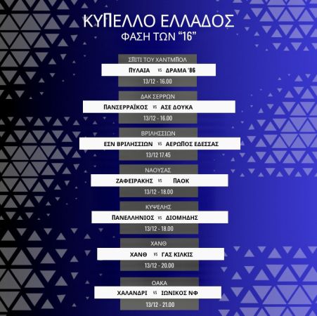 Κύπελλο Ανδρών (Φάση των 16- Προαναγγελία )