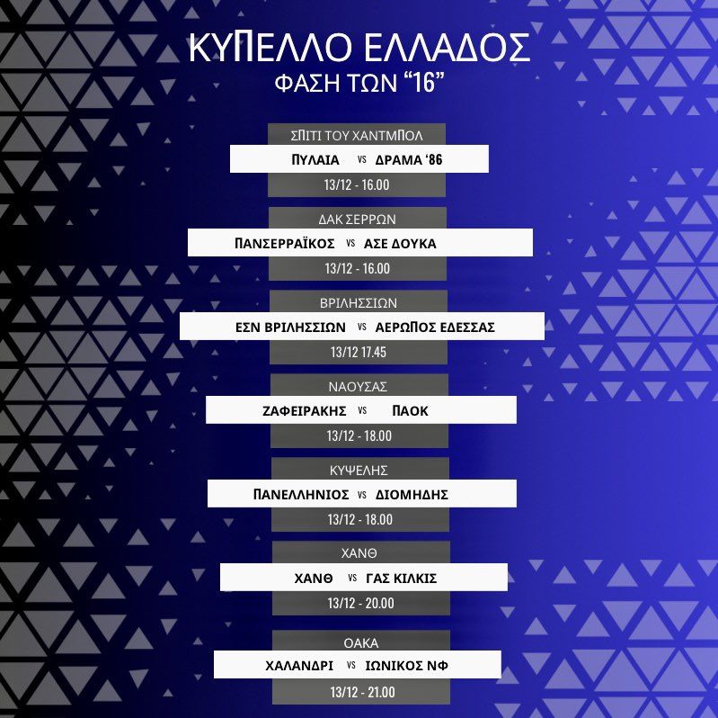 Κύπελλο Ανδρών (Φάση των 16- Προαναγγελία )