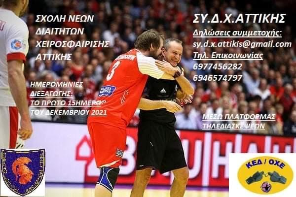 Ο Σύνδεσμος Διαιτητών Χειροσφαίρισης Αττικής διοργανώνει σχολή διαιτητών, το πρώτο δεκαπενθήμερο του Δεκεμβρίου 2021 μέσω πλατφόρμας τηλεδιασκέψεων.