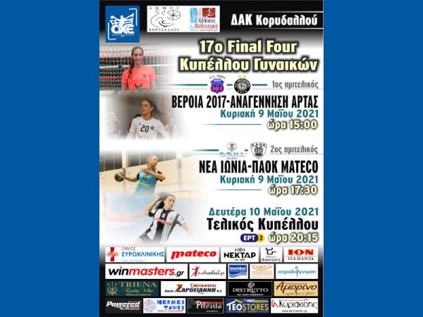 Αύριο και μεθαύριο 9-10 Μαΐου θα διεξαχθεί στο ΔΑΚ Κορυδαλλού το 17ο Final Four του Κυπέλλου Ελλάδος Γυναικών.Βέροια 2017, Αναγέννηση Άρτας, ΟΦΝ Ιωνίας και ΠΑΟΚ θα διεκδικήσουν τον πρώτο τίτλο της σεζόν στο γυναικείο χάντμπολ.