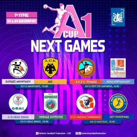 Σε τρεις... δόσεις θα πραγματοποιηθεί ο πρώτος γύρος του Κυπέλλου Ελλάδος Γυναικών, που περιλαμβάνει έξι αναμετρήσεις σε ισάριθμες πόλεις (Αμύνταιο, Θεσσαλονίκη, Αθήνα, Νάουσα, Γιαννιτσά και Κατερίνη.