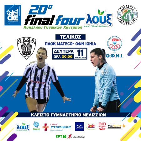 ΠΑΟΚ και ΟΦΝ Ιωνίας θα αναμετρηθούν στο σημερινό τελικό του 20ου Final Four του Κυπέλλου Γυναικών Λουξ στο ΚΓ Μελισσίων.